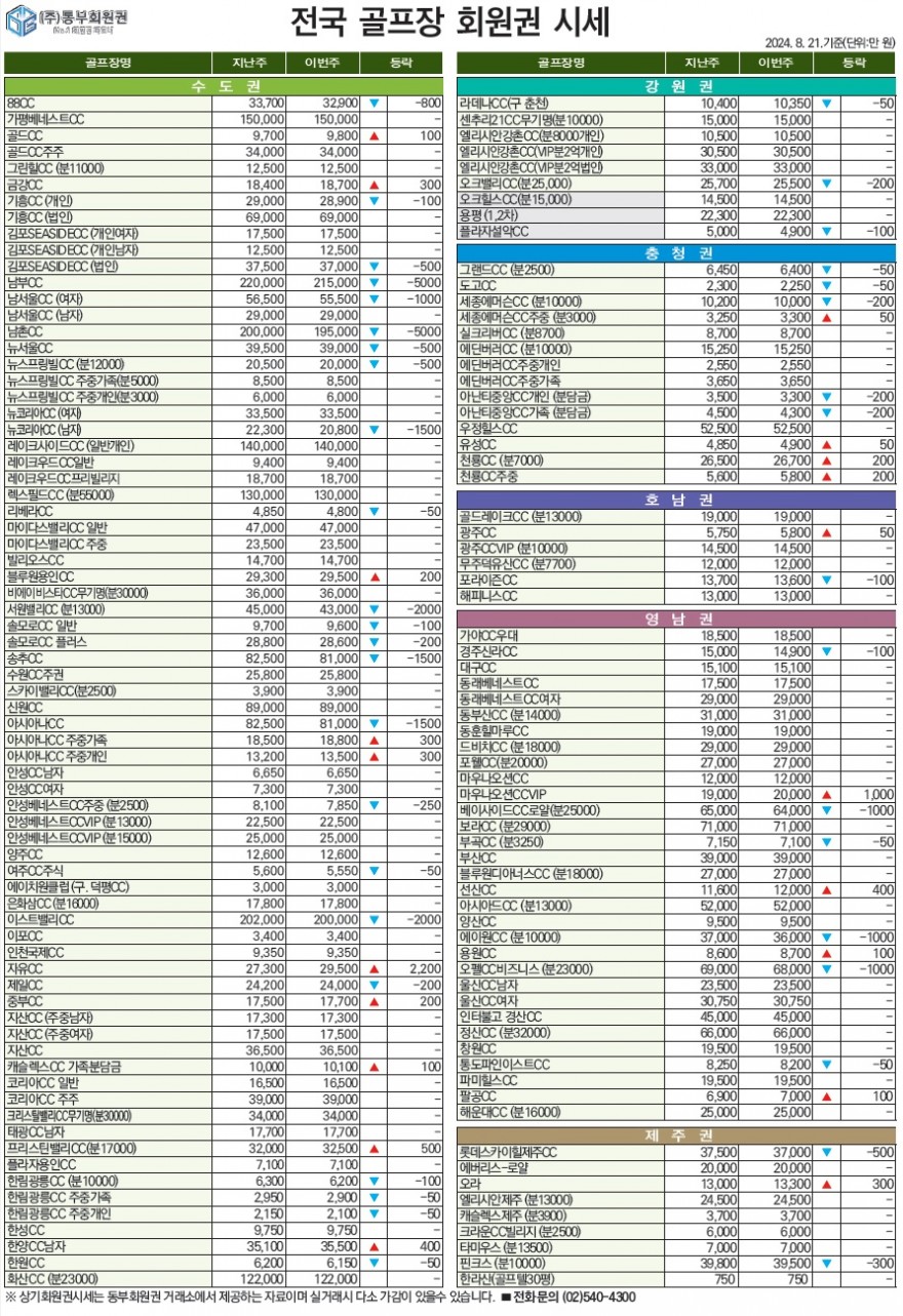 8월 3주차 회원권 시장의 전반적으로 약보합세의 흐름을 보이고 있다. 최근 국내외 증시가 급등락하자, 매매자들의 혼란이 가중되고 있다. 시장참여자들이 휴가시즌으로 인해 적극적인 대응을 하지 않는 상황이며 해당 악재가 회원권 시세에 반영히 제대로 안되고 있다고 생각한다.